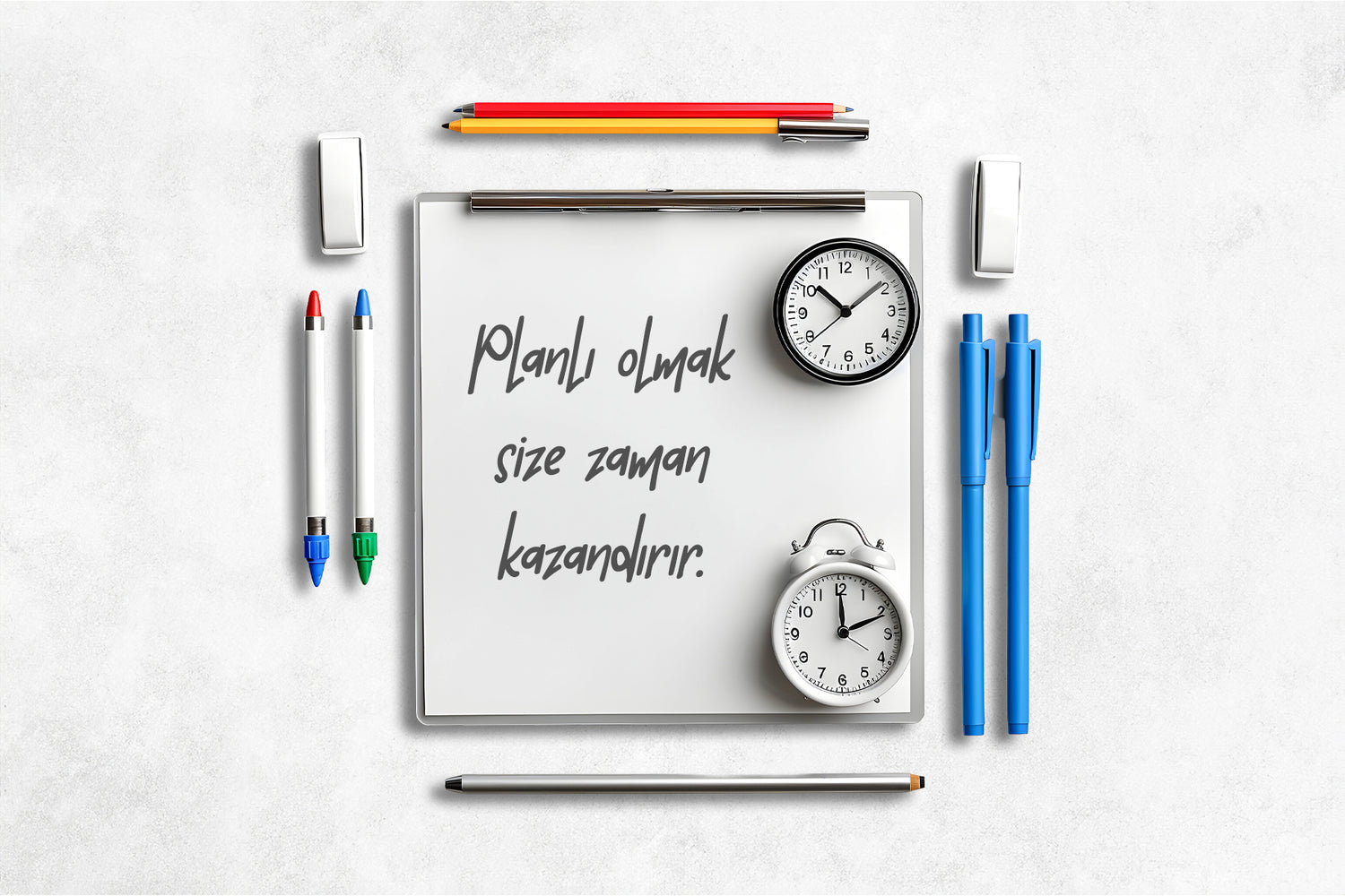 Planlı bir yaşam, zamanı verimli kullanmanın anahtarıdır. Günlük, haftalık veya aylık hedeflerin önceden belirlenmesi sayesinde gereksiz vakit kaybı önlenir. Ne yapacağınızı bildiğiniz bir günde, hem işlerinizi tamamlamak kolaylaşır hem de kendinize ayıracak daha fazla zamanınız olur.